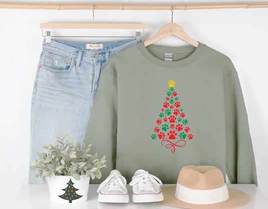 Paw Tree Colorful Holiday Dog Lover Crewneck Sweatshirt