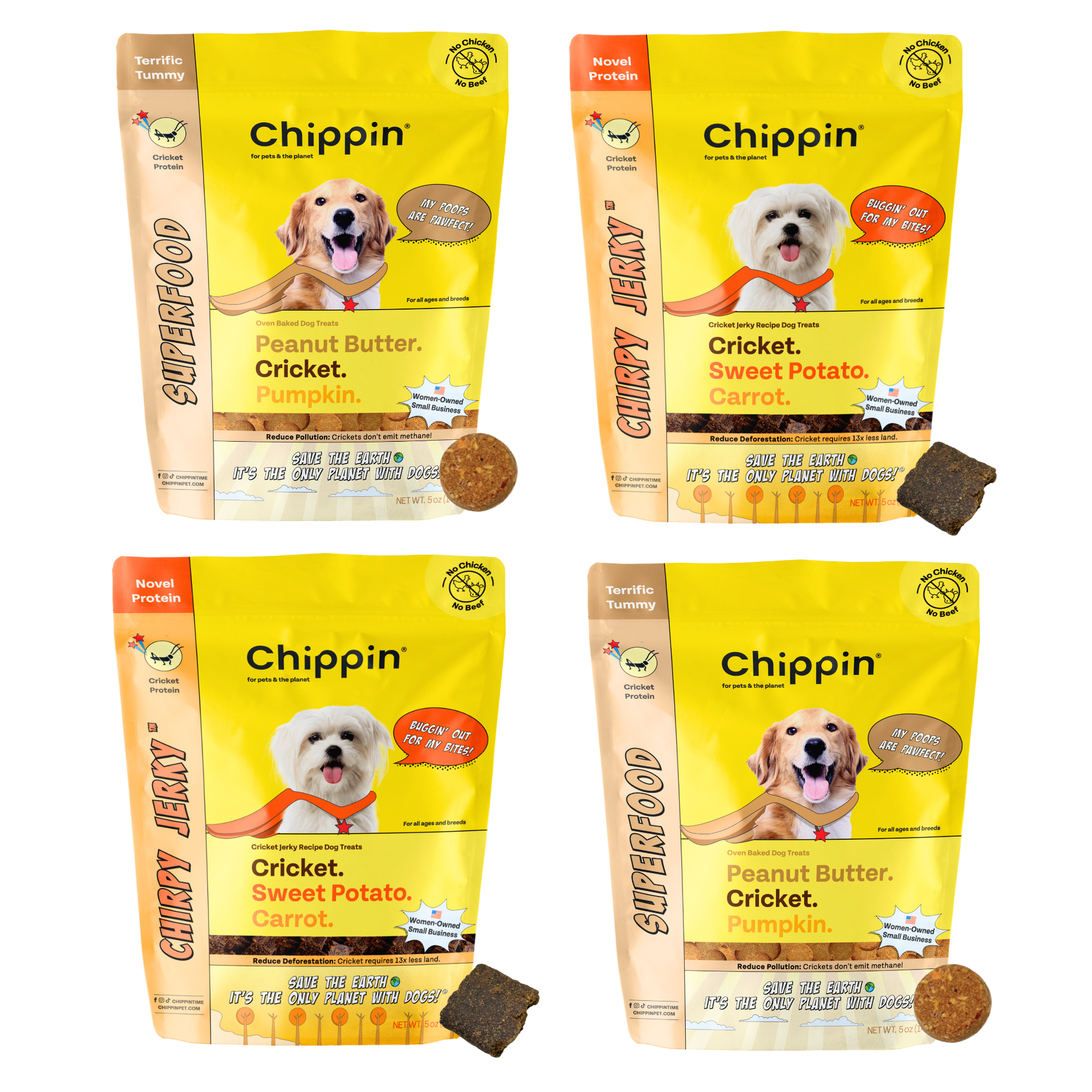 Pawfectly giftable, drool-worthy cricket dog treats. Crafted with human-grade ingredients and always chicken-free for even the most sensitive pups. These healthy, sustainable treats are perfectly paired to boost immune system health, reduce inflammation, and support digestion.