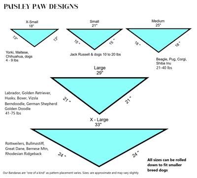 How to Use: For large dogs just tie around neck, smaller dogs roll down the top edge to make smaller and tie around neck, leaving a few inches for comfort. Wear bandana in front of chest or to the side or laying on dogs back – you choose the look!