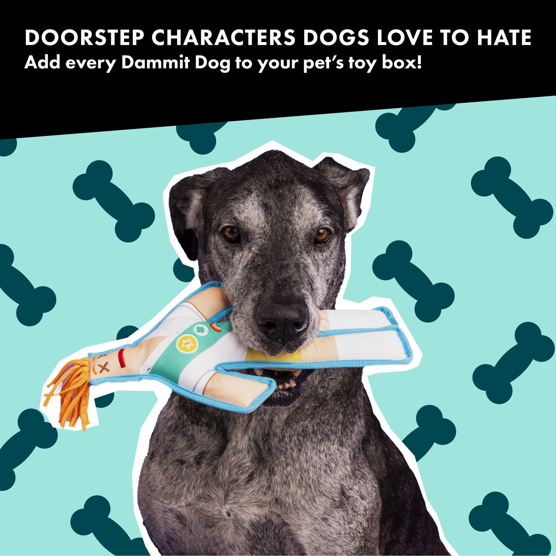 How are you going to come up to MY doorstep with boxes of delicious treats and NOT SHARE? Bark! Bark bark bark! This hilarious toy features a tough reinforced stitch and an irresistible squeaker inside. Perfect for light to medium chewers looking to redistribute a little cookie wealth!